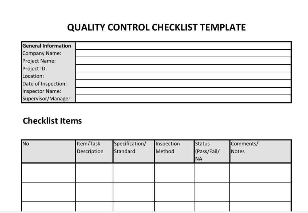 Quality Control & Inspection Log