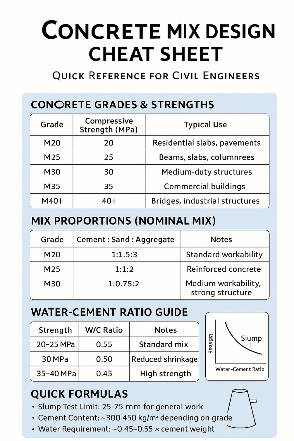 One Page Concrete Mix Design Cheat Sheet