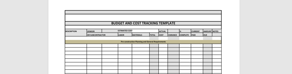 One Page Budget and Cost Tracking Template